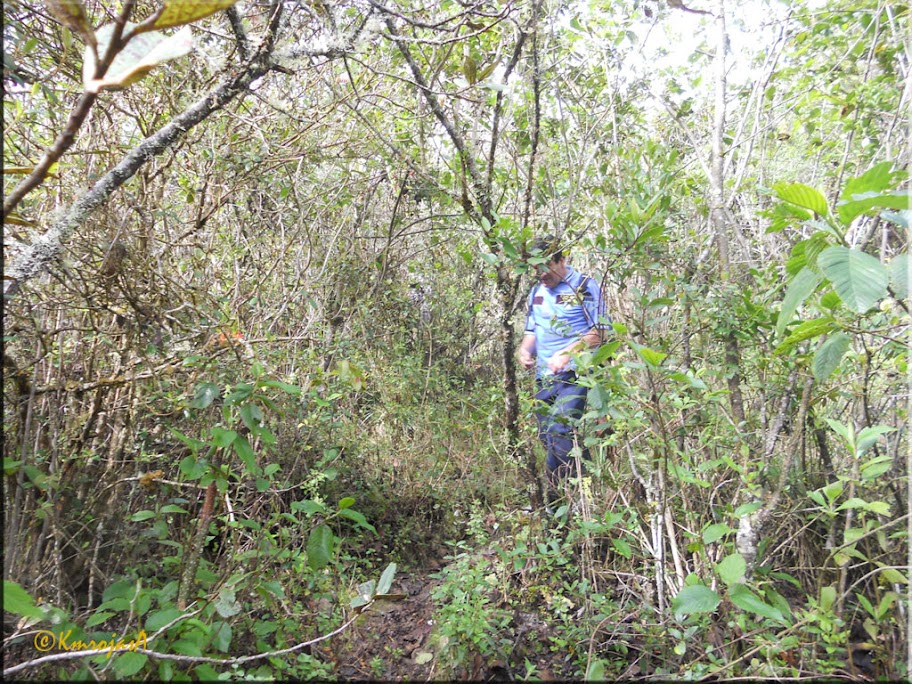 Uno de estos últimos fue el que tomamos, por indicación de un viajero que descendía hacia Sucre cuando le preguntamos que nuestro deseo era llegar al “Cráter de Silvapampa”. El camino, por las recientes lluvias, estuvo muy lodoso y resbaloso… Seguimos ascendiendo entre bosques de aliso y otras plantas. Sin embargo, para llegar al cráter, nos dimos cuenta que teníamos que cruzar una quebrada, descendimos a ella entre alisos y resbalando a cada momento, logramos cruzarla y alcanzar el otro lado. Esta parte de la quebrada resultó mucho más difícil de ascender por lo enmarañado de la vegetación llena de espinas y rocas cortantes, lo que allá llamamos “rangra”. No obstante la dificultad del caminar, siempre nos veíamos impresionados al encontrar una que otra flor hermosa que nos salía al paso. Seguimos ascendiendo hasta alcanzar una loma donde crecía sólo yerba y de acceso más fácil. Después de caminar un trecho de unos treinta minutos nos encontramos en la parte superior del impresionante cráter que se dibujó ante nosotros con una profundidad de unos cien metros y de igual diámetro. Se podía notar que era fácil descender allá abajo porque vimos que algunos animales pastaban apaciblemente. Decidimos dejar para otra oportunidad el descenso al cráter de Silvapampa.